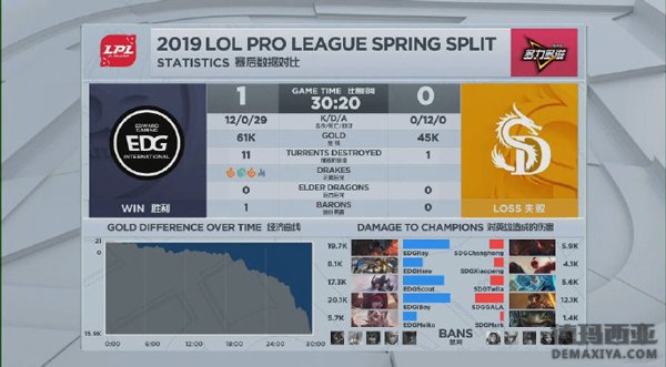 之后的比赛,EDG快速推塔并在中路推进SDG高地,接连战胜SDG多人后,EDG在不到20分钟的时间内结束比赛。恭喜EDG拿到赛季开门红!