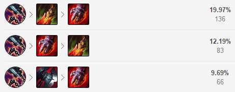 奥拉夫前期以Gank为主,虽然没有位移但奥拉夫追击能力强劲,我们基础Gank连招Q技能起手,贴近敌人WEA走砍配合不断输出,输出同时捡起斧子并继续配合Q技能黏住敌人直至击杀。团战奥拉夫需要一个良好的切入时机,团战R技能起手直冲敌人C位,配合QWEAAQA稳定击杀,这里记住奥拉夫切入没有回头路,配合好被动提供的机制,就是干!