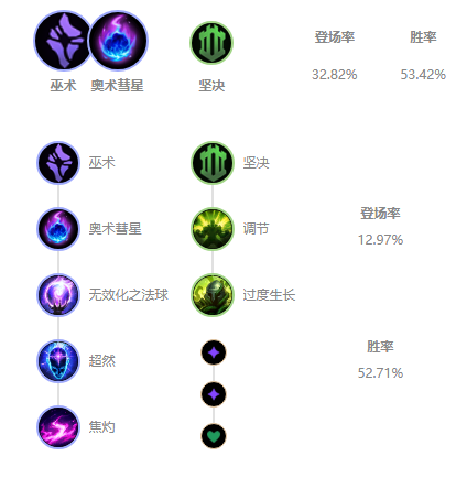 石头人主系符文选择奥术彗星,这样在线上可以通过Q技能来打消耗。法球相当于一个小型的饮魔刀,当残血到达一定的血量,会提供魔法护盾,超然目前版本非常的强,焦灼提供技能灼烧伤害。副系点出坚决增加石头人的坦度。