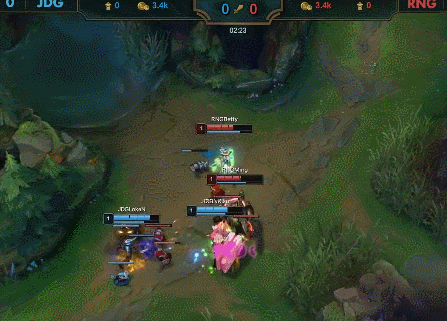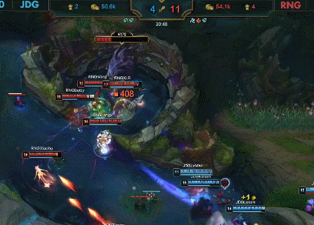 JDG四人抓上,击杀Langx瑟提拿到FB