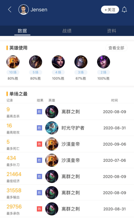 不过总体上看Broxah的打法更加传统,无论是英雄选择还是刷野路线,他的打法都更偏向团队化,以承担伤害与控下资源的方式为团队做贡献。而从最近在国服RANK记录来看,Broxah在有意练习野核打法,频繁使用豹女、男枪、莉莉娅 此类英雄,而招牌盲僧也是出场次数不少,值得一提的是Broxah的寡妇也是打出非常高得胜率,看得出来Broxah在RANK中扩充自己的英雄池以及打法风格。