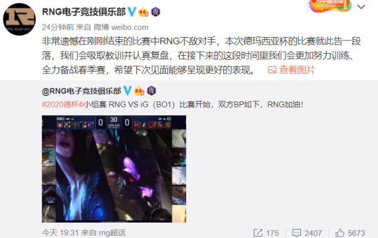 RNG赛后官博更新: