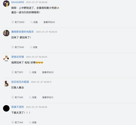 还有网友表示“下路组太顶了,刘青松状态也肉眼可见的好,大聪明厉害啊永远的神,春季赛mvp有力竞争者,我已经开始涅槃了,你以为林伟翔在送?其实是翔哥不想加班,巴黎人集合!冠军皮肤选鳄鱼。”