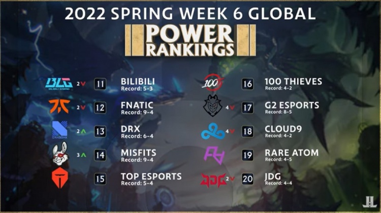 11-20名上榜的LPL队伍包括BLG、TES、RA和JDG,其中BLG是下滑退出了前十,TES虽然赛季刚开始的表现不佳无缘TOP20榜单,但是他则是凭借最近的一波三连胜成功进入前20。如果TES在下场比赛能继续击败EDG豪取四连胜,那么TES将有机会进入前十。