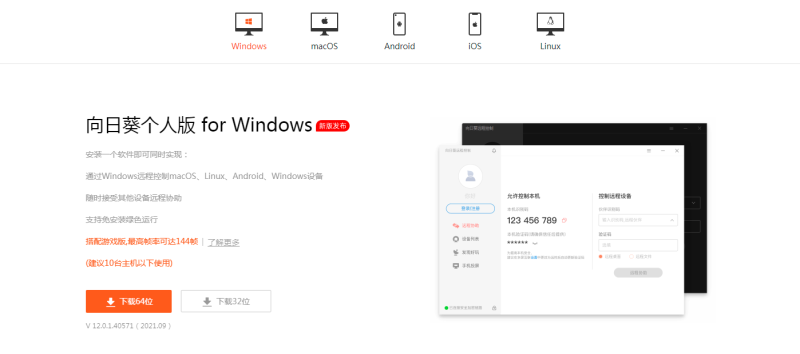 我们在公司电脑和自己电脑上下载好“向日葵远程控制”客户端,公司电脑作为主控,家中电脑被控。