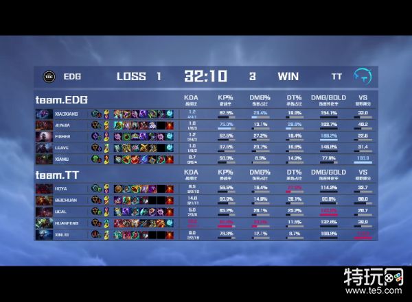 [32:04] 拿下远古龙的TT高歌猛进,奥恩叫羊虽被蔚打断,但EDG依然没法阻挡TT侧翼的开团,猴子大闹天宫触发斩杀,泽丽跟进输出将对方压在泉水,TT推掉基地一波结束比赛
