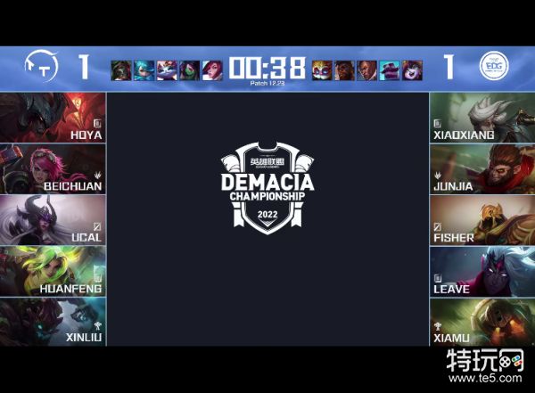 [12:28] 沙皇在河道被锁头抓死,上路打得有来有回,剑魔不断利用爆炸果实逃跑,EDG上中上头想越塔追击,剑魔冷静连招打落沙皇,辛德拉TP落地输出灌满,TT上中两人全部阵亡