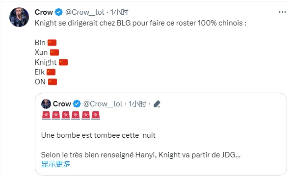 外媒爆料BLG阵容:仅换Yagao!Bin、Xun、knight、Elk、ON