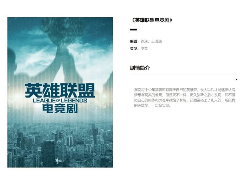 英雄联盟电竞电视剧还没开始拍,估计今年年底可以上线。