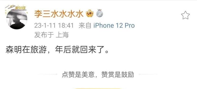 随后RNG工作人员站出来回应此事:Ming现在在旅游中,年后会回归。
