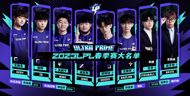 UP电子竞技俱乐部官宣了2023年LPL春季赛的大名单,只有上单位置轮换,打野Ning、辅助Baolan稳占主力位置。
