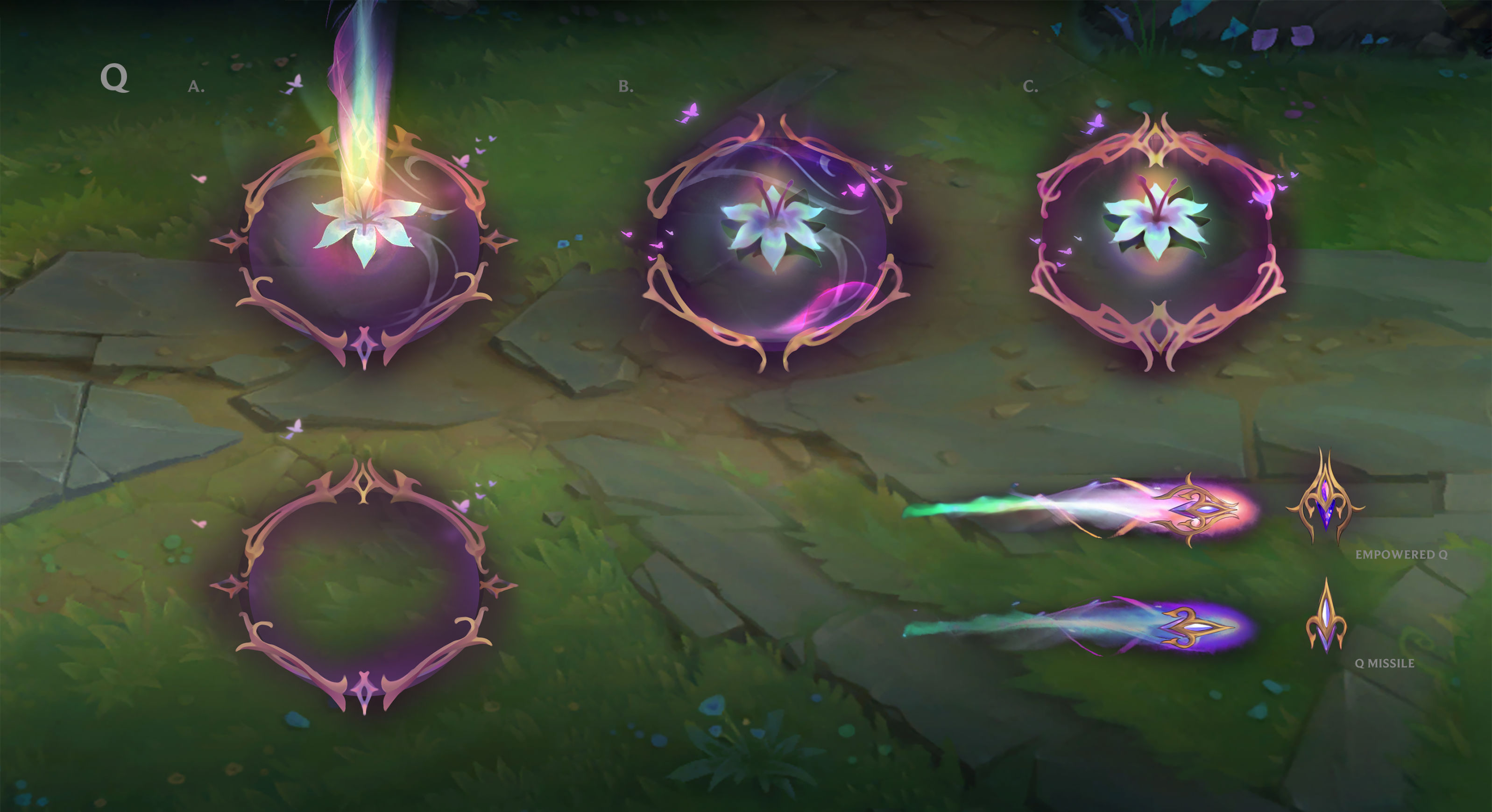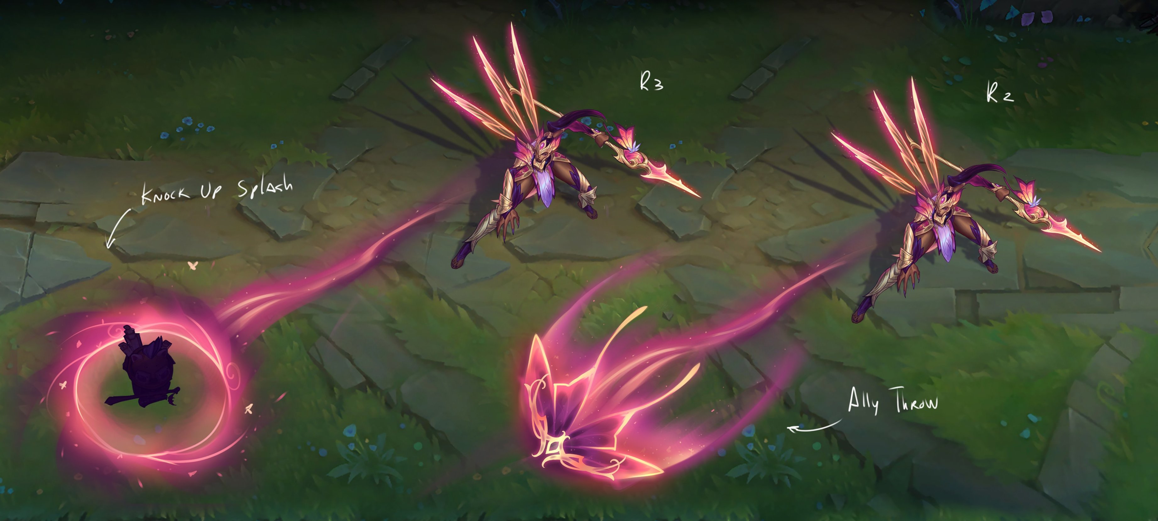 皮肤宇宙是一个充满美好与魔力、自然与神奇的世界,居住在那里的“妖精女皇”可以掌控四季的变化,而“仙灵”则可以从大自然的魔力中吸取力量。该宇宙并非只有光明与美好,可能是指有反派皮肤。