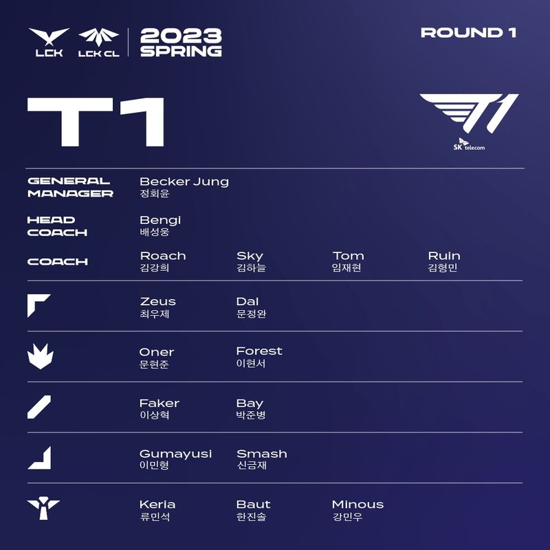 LOLS13赛季到来了,下一场就是LOL春季赛,而在LCK春季赛确定参赛的队伍目前有10个,其中就包括T1战队,那么T1战队的队员有哪些?下面就给大家带来LOLT1战队队员介绍。