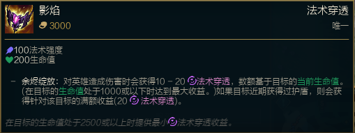 影炎自从BUFF修复之后伤害很稳定一直都是不错的选择,法穿效果对于顺风来说很有用,如果很顺我们也可以考虑不做视界专注直接选择影炎。