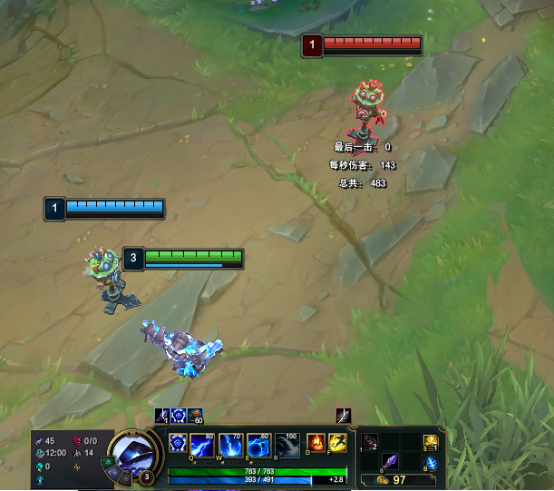 一级上线时我们就可以利用自己超远距离的Q技能偷钱,触发先攻加辅助装就是赚到,我们就可以额外获得30金币。