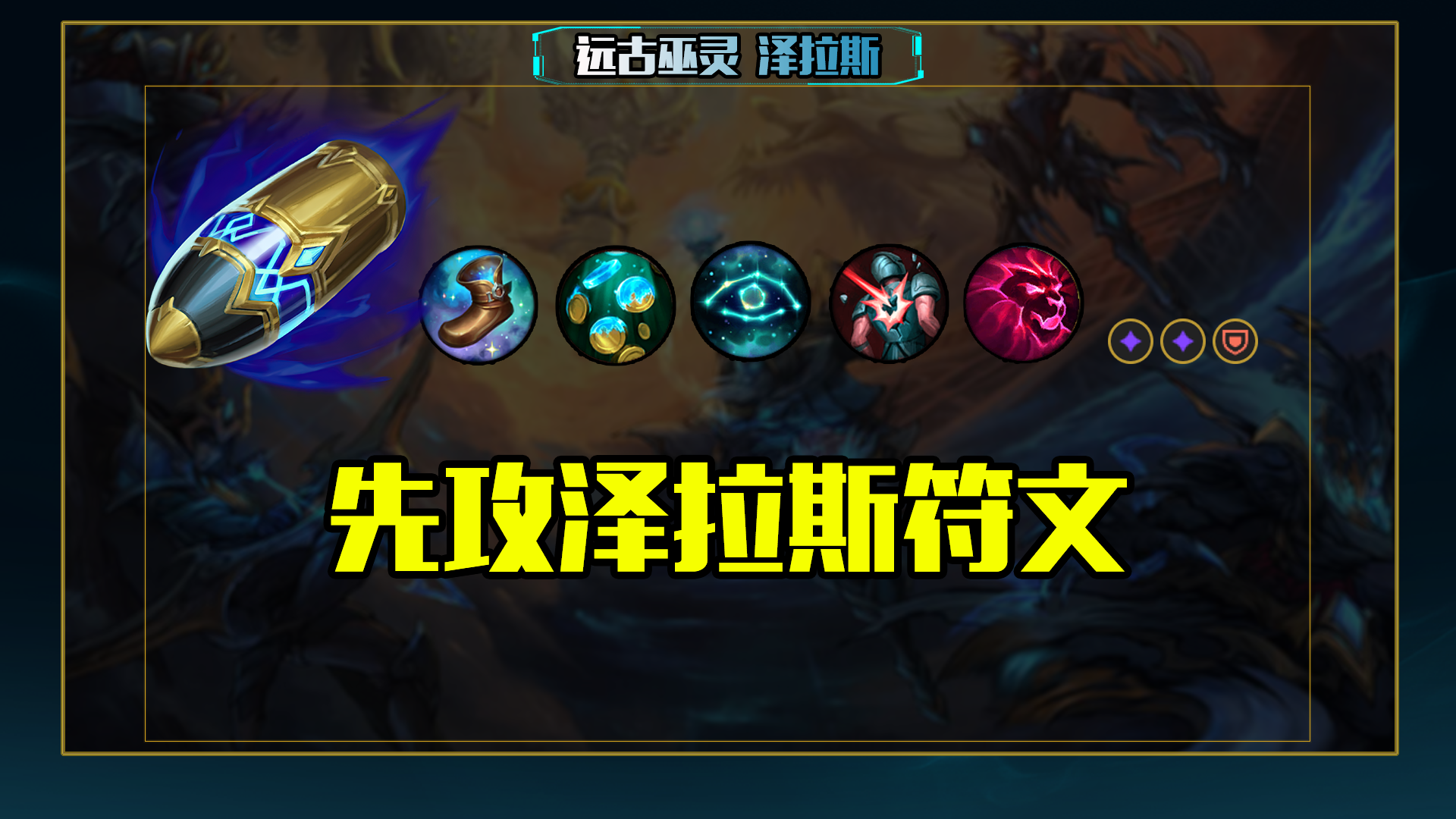 泽拉斯符文选择先攻,主系选择神奇之鞋加强辅助泽拉斯的发育速度,点出未来市场让自己的神话装备可以早点到来,星界洞悉可以减少主动道具的冷却,包括卢登和金身。