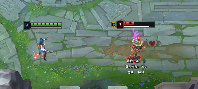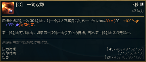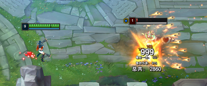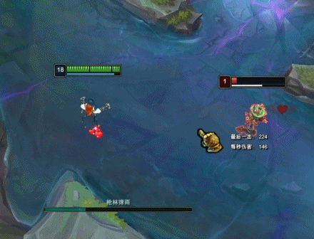 Q技能也是女枪作为ADC的主要换血方式,如果是辅助女枪只有在击杀小兵的时候才会让Q技能的伤害有一个明显的提升,主Q很明显并不适合辅助女枪进行对线换血。