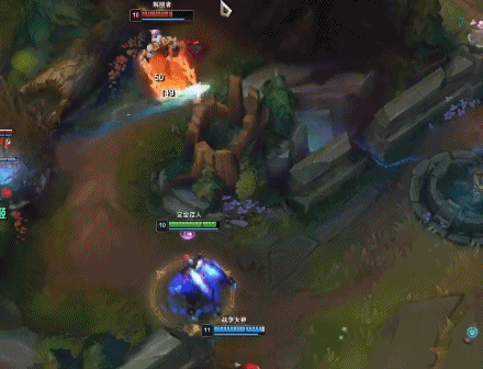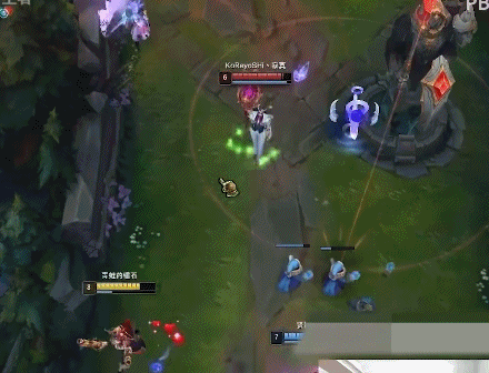 当自己开R的环境比较好的时候,可以不用造成击杀,一个E加R完全可以打低对方下路组合的血线,让对方不能在塔下安心补刀从而限制发育。