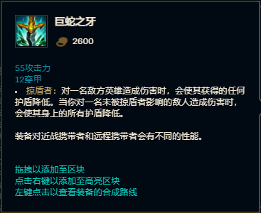 如果对方护盾较多,我们也可以选择巨蛇之牙,能让我们的团战能力更强,尤其在面对露露风女这类辅助时巨蛇之牙优先级极高。