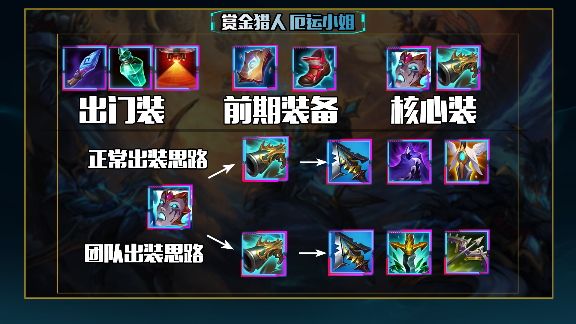 中期装备选择收集者和赛瑞尔达的怨恨,这两件装备能够大幅度提升女枪Q和R技能的伤害,让女枪不再是一个被人贴脸就要任人宰割的辅助英雄,相反还让她有了不俗的输出。