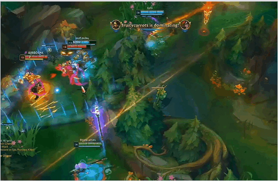 Q:豹女核心输出技能,人形态的Q可以远程Poke基于距离打伤害,豹形态强化输出;