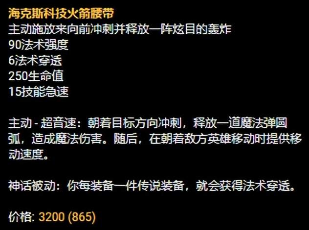 中单莫甘娜比较重要的一件装备就是“火箭腰带”,这跟普通的辅助型莫甘娜的打法是截然不同的。火箭腰带这件装备的主动效果可以给莫甘娜提供一定的小位移,让莫甘娜可以先手利用火箭腰带的位移强制进场然后再配合R技能,其中还可以穿插闪现来打,让莫甘娜的机动性可以得到很强的提升,莫甘娜这个英雄是没有位移技能的,如果不穿插一些被动的位移技能,莫甘娜的技能实际效果是发挥不出来的,就会陷入非常被动的局面。所以在近期中单莫甘娜的崛起让“火箭腰带”成为了最契合莫甘娜的一件神话装备。