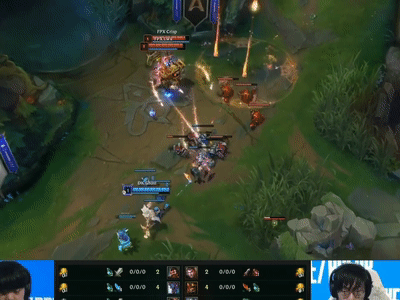 两个英雄强度都高,基本没法同时击破,那么我们就抓住一个点看看能不能动手。女坦作为开团硬辅,缺点是笨重无位移,怕风筝。那么我们就可以选择风女带一个消耗AD,比如EZ。女坦开团比较依赖E和闪现,一旦风女的Q将其E打断,则至少可以将女坦反打半血。