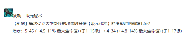 被动小幅加强(对坦克而言)不过对于喵凯打野而言还是先观望一下,我有机会也会去尝试,我的预测是不适合国服的生态环境。。。(玩了一把,前期能力比较差,别玩。。。)