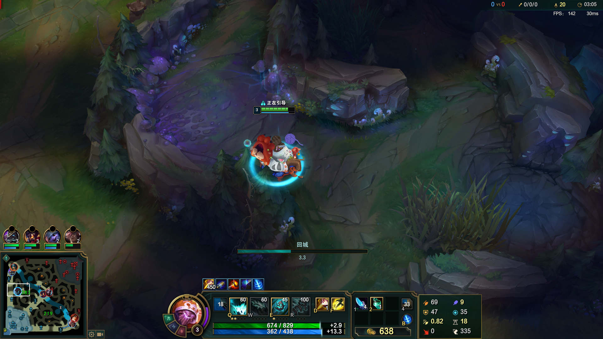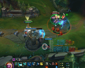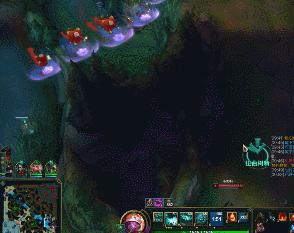 虽然刷野速度倒是没啥问题(3分刷完除了石头人)但是太笨重,缺乏GANK与野区对抗能力,特别是中上弱势基本宣判死刑(中单维克托上单狗头,我玩什么强势打野也强势不起来。。。)这把上中前期太过于弱势,只能围绕下路,这把思路是速刷上半野区然后回城刷完石头人抓下路,大树第一个闪现还是能做点事情的,第二波基本就要靠六级R绕后留人。