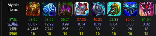 辅助的话薄暮法袍没得说,倒是整体的AP装备胜率都非常拉胯,别碰就行了。