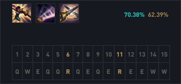 剑姬这个英雄,主流的肯定还是主Q副E,因为Q技能是剑姬的主要伤害技能,这小段的位移对于剑姬来说,非常关键,而E技能也是主要打伤害的。而W技能更多还是以格挡技能为主,最后就是有R点R。
