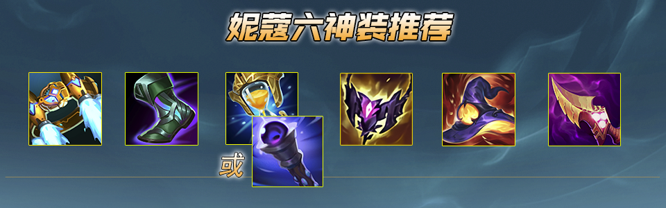 妮蔻很怕水银鞋水印饰带等解控装备,在高韧性的英雄面前,很难打满伤害。