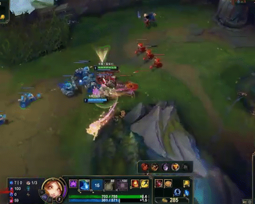 6级后对面没有净化或者韧性的时候E穿过小兵马上开R是可以接上控制打满伤害的,消耗对面2个q基本上就到了斩杀线。E一定要穿过小兵才能接上R,如果敌方英雄是E的第一个目标就接不上R的。