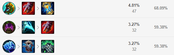 狗熊的玩法多样,想要输出就出神圣分离者,想要开团就出涡轮炼金罐,想要出肉就冰拳。神分的思路以半肉战士位主,血手和金身都能够增加容错率。回蓝刀和血手也有不错的输出。纯肉就出蓝绿甲,增加坦度。