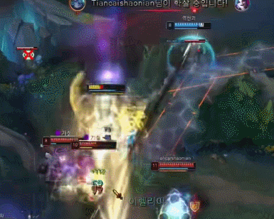 团战中刀妹尽量后手进团,脆弱的身板先行进团很容易被秒,利用大招提供的Q技能穿透效果,逼近敌方C位的位置,利用E技能控制敌方C位从而秒杀。