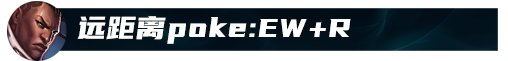 适合打团前的poke,ew无后摇且r的子弹能触发w加速效果让对面更难躲从而吃到更多我们r的伤害。