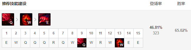 乌鸦主要Q副W,因为E技能只是带控制,并没有伤害过多的加成,所以最后在加满。
