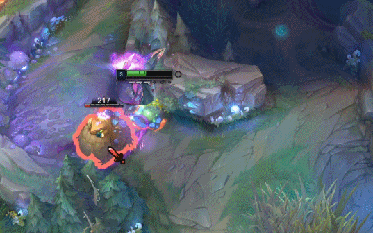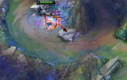 首先是被动技能,卑尔维斯在使用技能后会无视单位体积碰撞,并且后续两次普攻获得攻速加成,这是卑尔维斯前期刷野和对拼穿插普攻的关键。