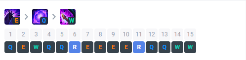 具体加点如图,先加三级Q技能保证刷野效率,随后选择主E提高自己的斩杀和吸血效果,帮助自己在对拼中取得更大优势。