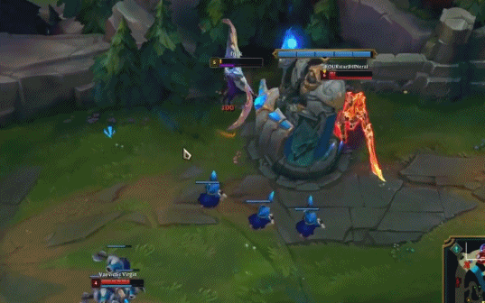 最后我们可以先先打蛤蟆再打蓝,也可以蓝和蛤蟆拉到一起打,残血使用E技能加惩戒蓝BUFF恢复状态,随后击杀蛤蟆保证自己健康血量。