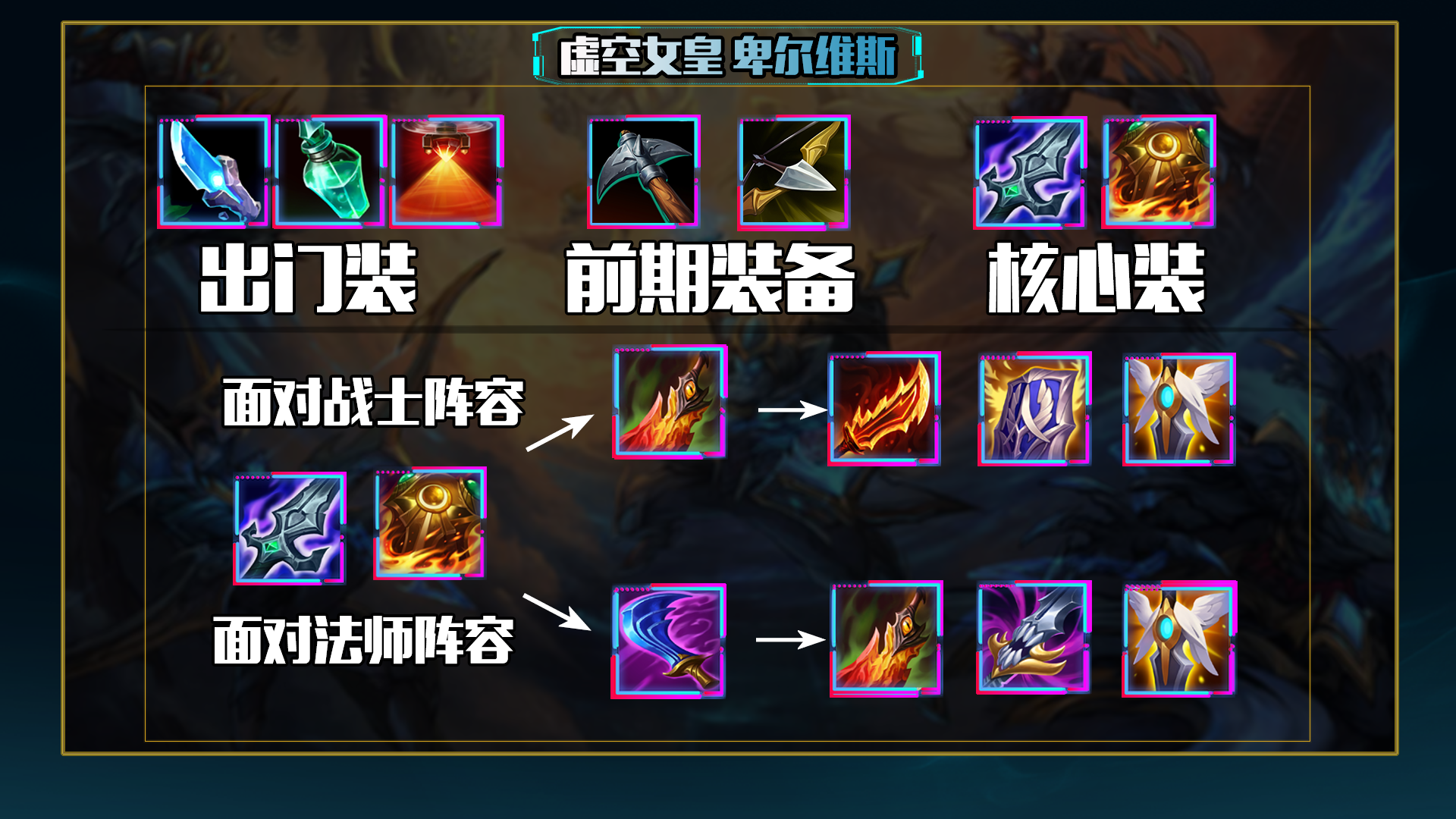随着lol新版本的到来,很多人不知道改动了啥,现在又该如何玩,怎么出装,天赋点什么,英雄的改动,现在有我跟大家讲解一下在12.16版本虚空女皇玩法推荐。