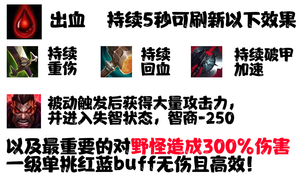 所以这一套玩法都是围绕被动展开滴~(流血对野怪伤害极高,所以一级必偷敌方红BUFF!!!)