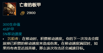 缺点:价格较贵,性价比较低,单次的移速收益也不大,本身装备定位是坦克型打野游走用的,单人路出这件装备非常拖经济,这里选择用炼金罐的主动效果替代了板甲的被动移速。