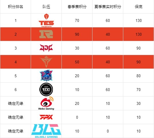EDG如果夺得夏季赛冠军就会直接进世界赛,否则就会因为积分小于TES和RNG要打冒泡赛。