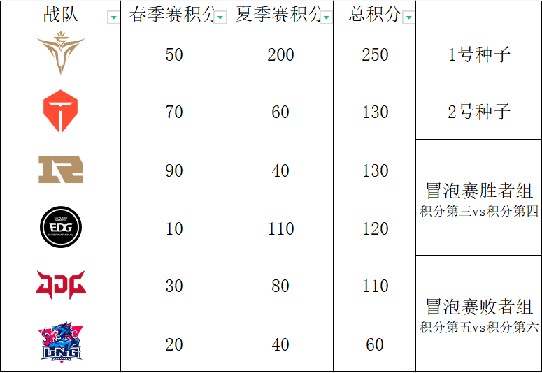 总结一下,TES季后赛赢2个BO5或者冒泡赛赢1个BO5就必进世界赛,幸运情况下一个BO5不赢都能进世界赛。