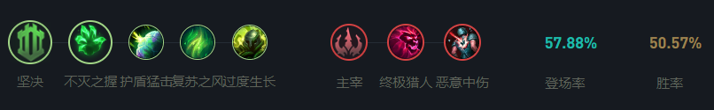 不灭之握提升慎的线上续航能力,同时提升对敌方英雄造成更高的伤害,护盾猛击完美契合慎的被动,使慎带护盾时造成的伤害更高,复苏之风提升慎在线上的抗揍能力,过度生长提升慎的血量加成。副系终级猎人提升慎的大招冷却缩减,恶意中伤对移速受损的敌方英雄造成额外的魔法伤害。