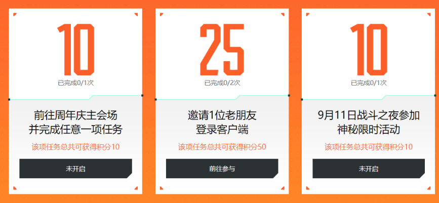 11周年活动现已开启,在9月11日之前完成各项任务获得积分,并参加9月11日的战斗之夜领取钥匙,即可白嫖皮肤、表情、守卫等奖励。