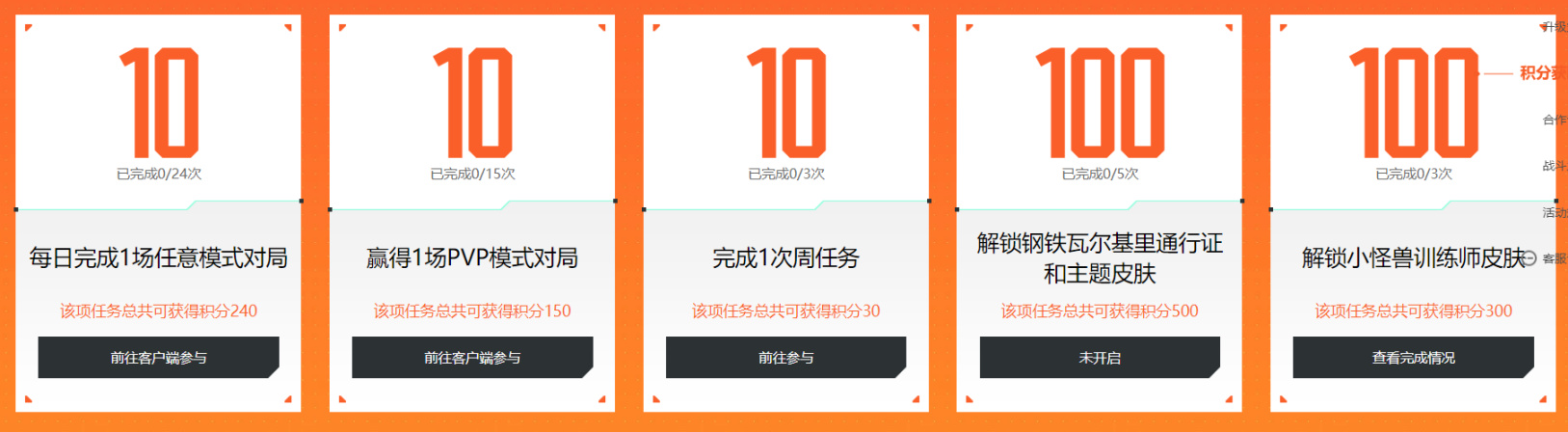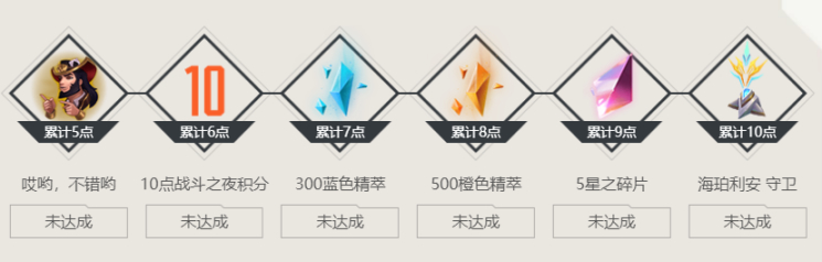 表情→10积分→300蓝色精萃→500橙色精萃→5星之碎片→守卫