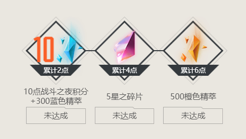 10积分、300蓝色精萃→5星之碎片→500橙色精萃