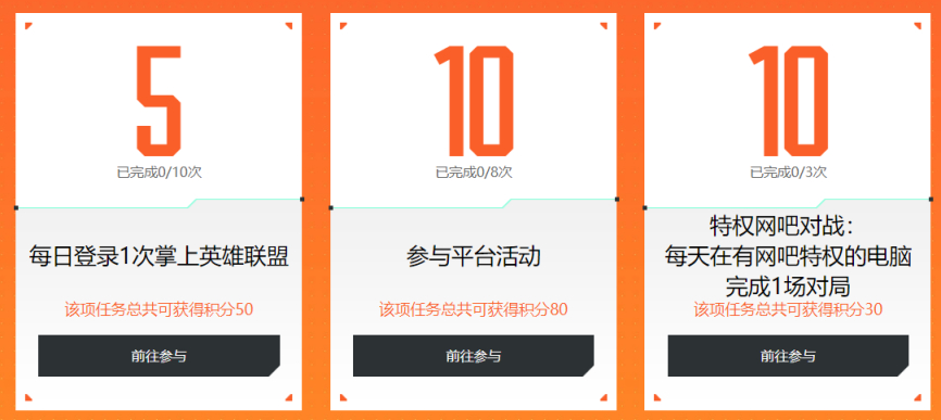 每天在网吧特权电脑完成1场对局:每次10分,共30分。